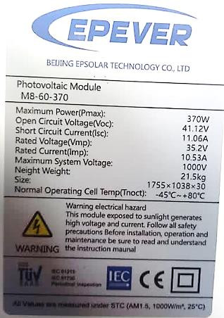 solar panel: 370w