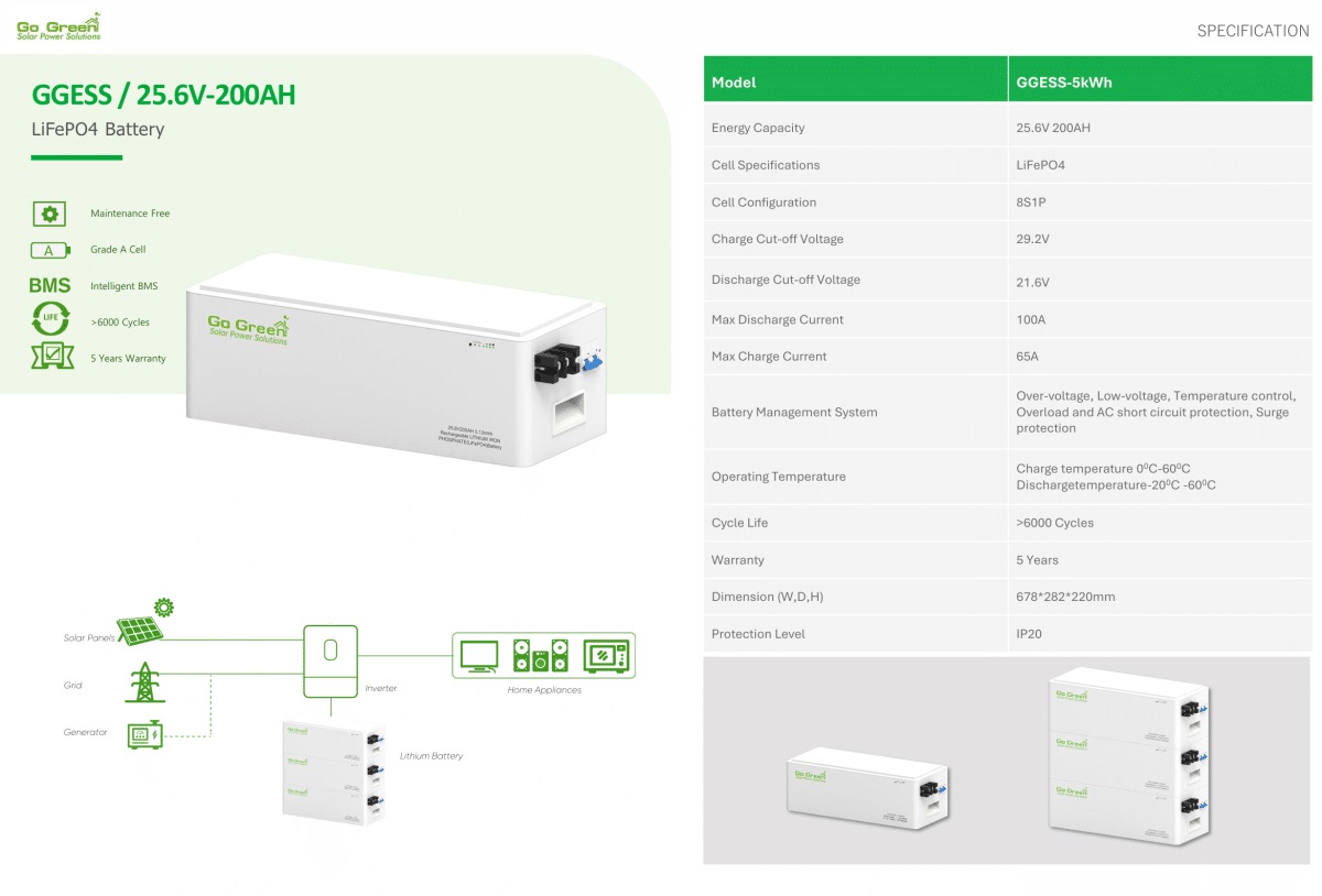 باتری لیتیومی 200 آمپر ساعت 25.6 ولت برند Go Green مدل GGESS/25.6V-200A
