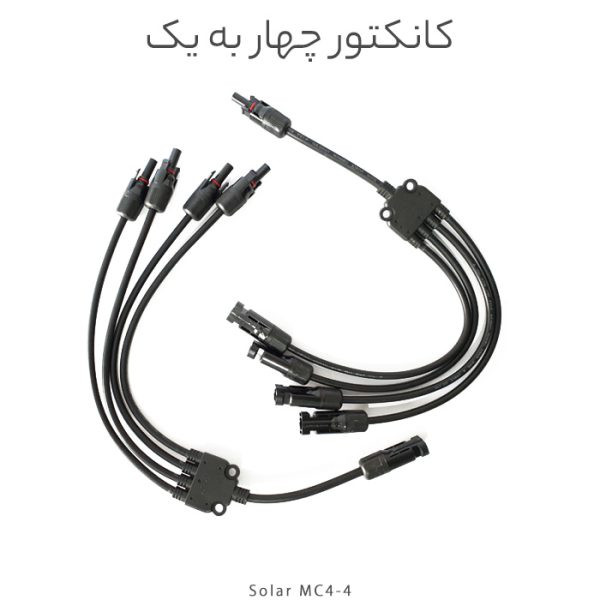 کانکتور خورشیدی برای اتصال پنل های خورشیدی به هم استفاده میشود. کانکتور خورشیدی چهار به یک برای اتصال موازی چهار پنل خورشیدی به یکدیگر استفاده میشود.