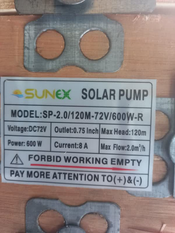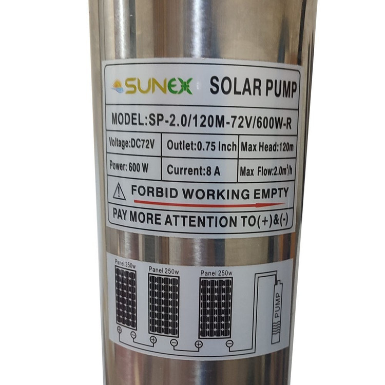 پمپ خورشیدی براشلس 600 وات 120 متر 72 ولت سانکس Sunex