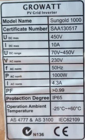 اینورتر آنگرید تکفاز 1 کیلووات گرووات(متصل به شبکه)